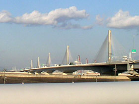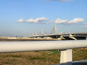 ※木曽川に架かる橋と揖斐川に架かる橋の2ヶ所の橋をトゥインクルと呼ぶ。 【左&右】(切り取り加工)揖斐川に架かる橋の遠景。走行しながら横方面を写すのは難しいな。(2006/3/20撮影)