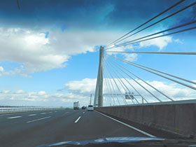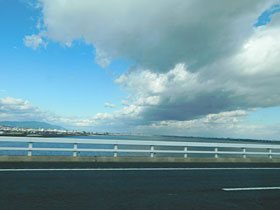 ※木曽川に架かる橋と揖斐川に架かる橋の2ヶ所の橋をトゥインクルと呼ぶ。 【左】揖斐川に架かる橋。(2024/1/7撮影) 【右】揖斐川。雲が凄いな…。(2024/1/7撮影)