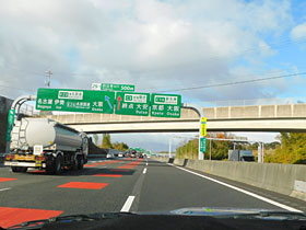 【左】四日市Jct.500mの案内板。(2022/12/27撮影)