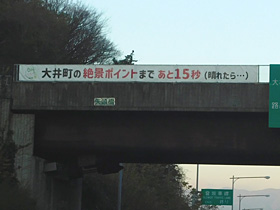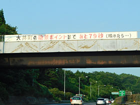 【右】56.3kpstの奥の矢頭橋の横断幕、