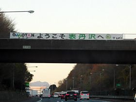 49kpst手前の陸橋(芹沢橋)の横断幕、