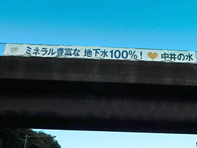 【下り】49kpst手前の陸橋。秦野市なのに中井町の横断幕、