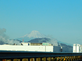 【上り】大井川橋の183.5kpstから日清食品工場の煙の間から富士山を(^^)(2022/1/5撮影)
