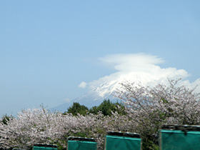 【左】富士川SAからの合流方面の奥の橋の手前から富士山。横の桜とセットで♪(2010/4/11撮影)