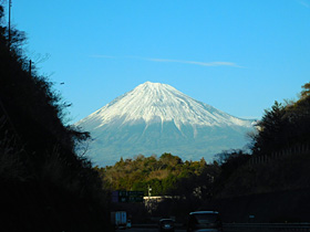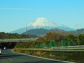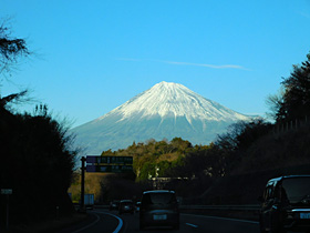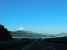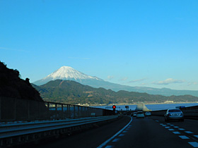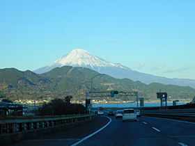 【上り】日本坂トンネルを出て合流方面。前方に富士山。(2022/1/5撮影)