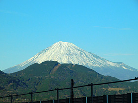 【左】由比PA入口方面。富士山と海の青。(2022/1/5撮影)