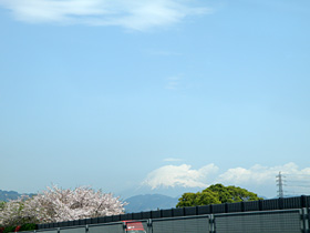 【右】150.4kpstから富士山。壁の上から桜?白い花が顔を出していた♪(2010/4/11撮影)