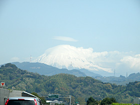 【上り】140.1kpstから。いろいろな雲で輪郭が不思議な富士山。(2010/4/11撮影)
