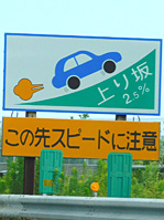【真ん中】「上り坂2.5% この先スピードに注意」。(2018/8/18撮影)